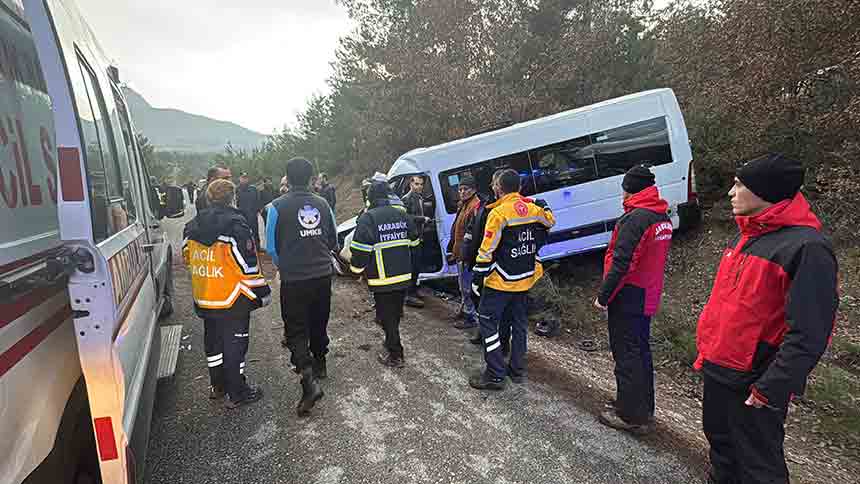 Kazada minibüs sürücüsü ile birlikte araçta bulunan 16 yabancı öğrenci yaralandı. İhbar üzerine bölgeye çok sayıda ekip sevk edildi. Olay yerine jandarma, itfaiye, AFAD ve 112 Acil Sağlık ekipleri yönlendirildi. Yaralılara ilk müdahale olay yerinde yapıldı.
