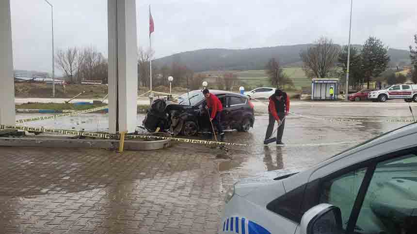 Edinilen bilgilere göre, Murat H. (26) idaresindeki 20 AKD 404 plakalı otomobil, sürücüsünün direksiyon hâkimiyetini kaybetmesi sonucu önce refüje, ardından yol kenarında bulunan LPG istasyonundaki kolona çarptı.