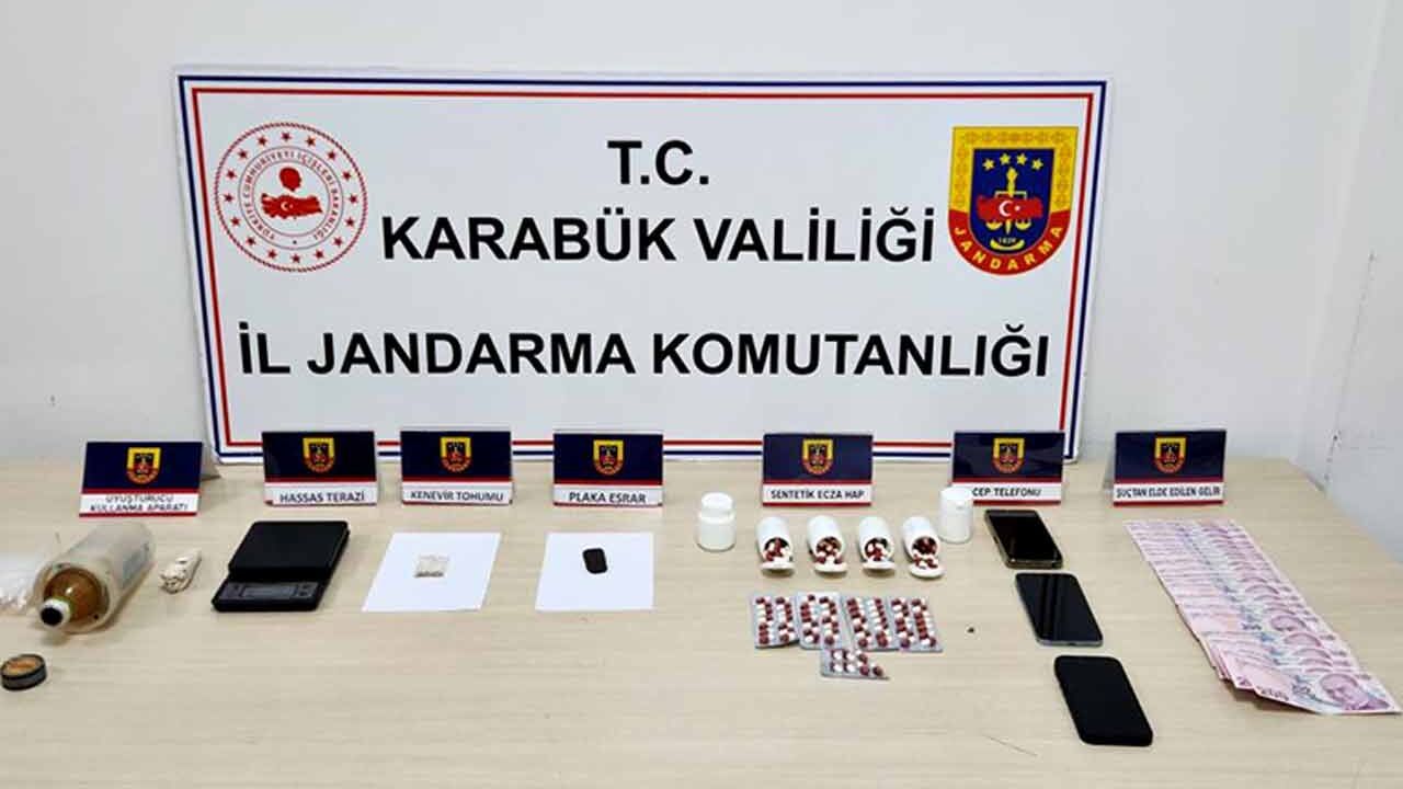 Edinilen bilgiye göre, il merkezinde yapılan çalışmalar kapsamında 3 şüphelinin ikametinde ve iş yerinde arama gerçekleştirildi. Yapılan aramalarda; 284 adet sentetik hap, 10,51 gram plaka esrar, 0,49 gram kenevir tohumu, 1 adet hassas terazi, 38 adet kilitli poşet, 2 adet uyuşturucu kullanma aparatı, 1 adet esrar öğütme aparatı ve 8 bin 800 TL nakit para ele geçirildi. Ayrıca 3 cep telefonuna da incelenmek üzere el konuldu.