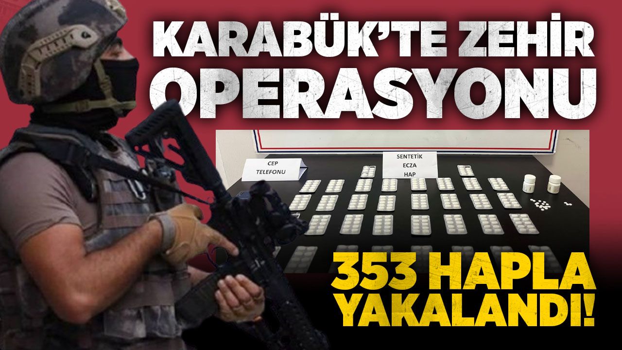 Karabük İl Jandarma Komutanlığı ekiplerince savcılık koordinesinde il merkezinde icra edilen operasyonda, şüpheli bir şahsın üzerinde ve eşyalarında yapılan aramada 353 sentetik ecza hap ele geçirildi. Olayla ilgili bir adet cep telefonuna da inceleme amacıyla el konulurken, şüpheli şahıs işlemlerinin ardından adliyeye sevk edildi.