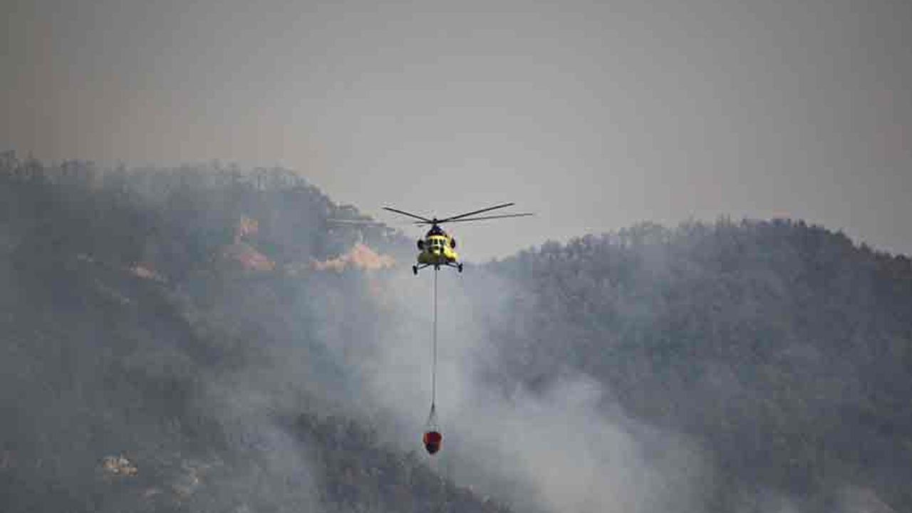 100 saattir merkez ve çevresindeki köylerde etkili olan yangına ekiplerin havadan ve karadan müdahalesi sürüyor. Arazinin sarp ve ulaşım güç olmasına rağmen havadan yapılan müdahaleler ile alevlerin enerjisi düşürülüyor. Yangının ilk anından itibaren söndürme çalışmalarına katılan kadın pilot, "Her giden canlıyı gördükçe çok üzülüyoruz" ifadelerini kullandı.