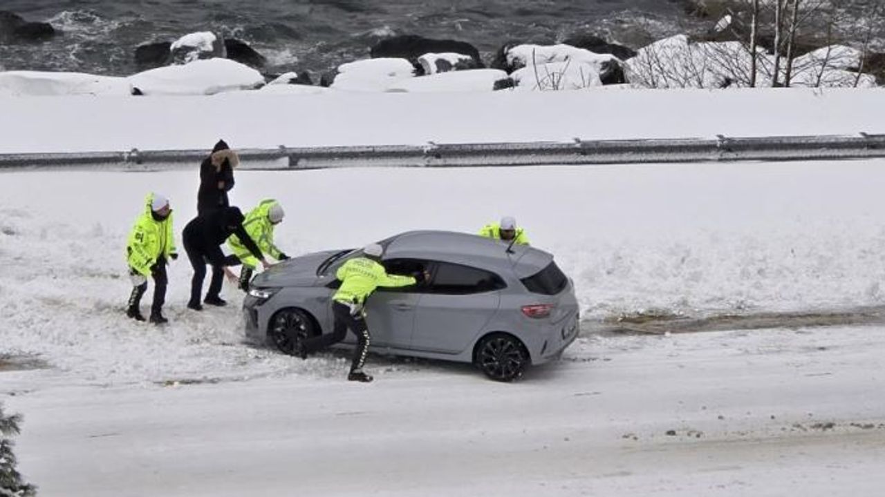 Doğu Karadeniz Bölgesi'nde yoğun kar yağışı aralıksız devam ediyor. Şiddetli kar yağışı zaman zaman Karadeniz Sahil Yolu'nda trafiğin durma noktasına gelmesine sebep oluyor. Rize'nin Pazar ilçesi Soğuksu Mahallesi mevkiinde bozulan bir araç olduğu yerden hareket edemedi. Yol güvenliğini sağlamak amacıyla bölgede bulunan trafik polisleri araca müdahale ederek itmeye başladı. Polislerin sürücüye yardım ettiği anlar ise vatandaşlar tarafından görüntülendi.