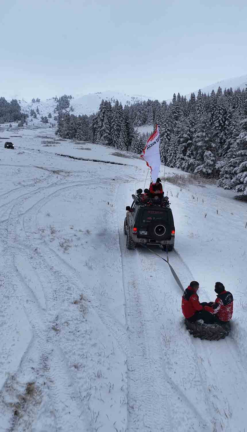 Kastamonu-Çankırı sınırında bulunan Ilgaz Dağı, kar yağışıyla beyaza büründü. Kar yağışının ardından etkinlik düzenleyen Kastamonu Kamp ve Off-Road Kulübü (KAMPOFF) üyeleri Ilgaz Dağı'nda doyasıya eğlendi. Doğa severler, off-road aracının arkasına bağladıkları lastiklerle kayarak doyasıya eğlendi.