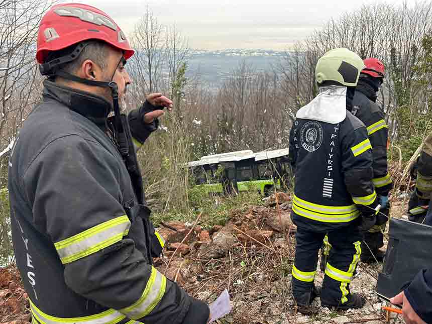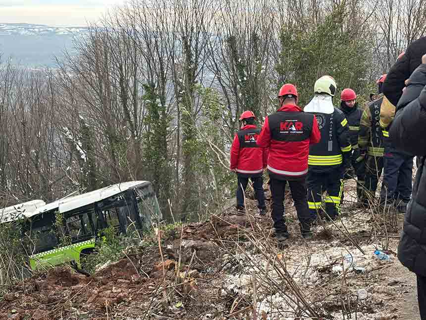 Kocaeli’nin Kartepe ilçesinde, zirveden dönüş yolunda seyir halindeki şehir içi toplu taşıma otobüsü henüz bilinmeyen bir nedenle kontrolden çıkarak şarampole yuvarlandı.
