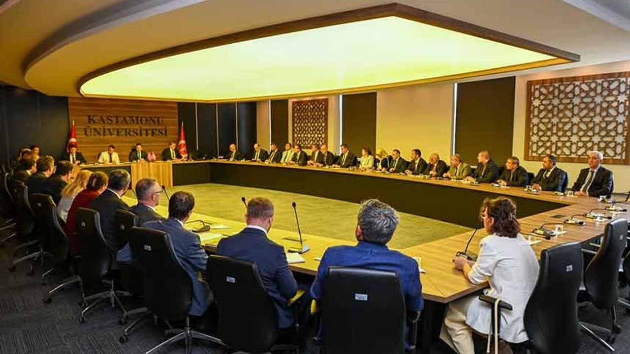 Rektör Prof. Dr. Ahmet Hamdi Topal başkanlığında bir araya gelen Kastamonu Üniversitesi Senatosu, 2025-2026 Akademik Yılı öncesinde yürütülen çalışmalar ve yapılacak hazırlıkları değerlendirdi. Toplantıda Rektör yardımcıları Prof. Dr. Mehmet Atalan, Prof. Dr. Selahattin Kaymakcı, Genel Sekreter Vekili Doç. Dr. İbrahim Demirbaş ile fakülte, yüksekokul ve enstitü temsilcilerinden oluşan senato üyeleri yer aldı.