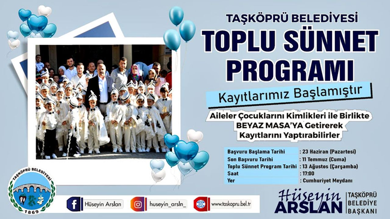 Taşköprü Belediye Başkanı Hüseyin Arslan, yaptığı açıklamada, "Hayırsever iş insanımız Sadi Kaya’nın kıymetli destekleriyle bu yıl da evlatlarımızın sünnet törenini hep birlikte gerçekleştireceğiz. Kendisine halkımız adına gönülden teşekkür ediyorum. Tüm hemşehrilerimizi, çocuklarımızın bu özel gününde yanımızda olmaya davet ediyorum" ifadelerini kullandı.