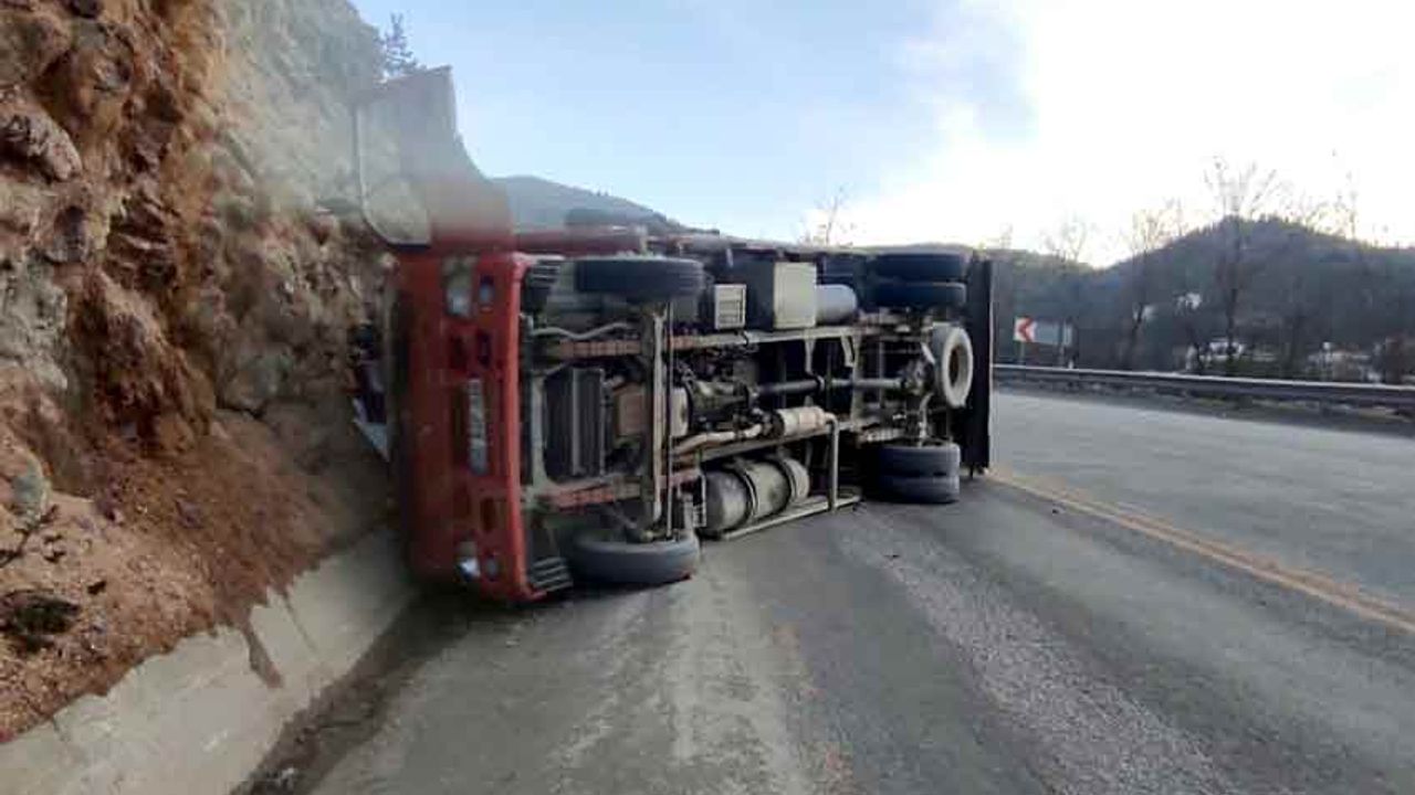 Kastamonu’nun Küre ilçesinde meyve ve sebze yüklü kamyon, sürücüsünün direksiyon hakimiyetini kaybetmesiyle devrildi. Kazada yaralanan olmadı.