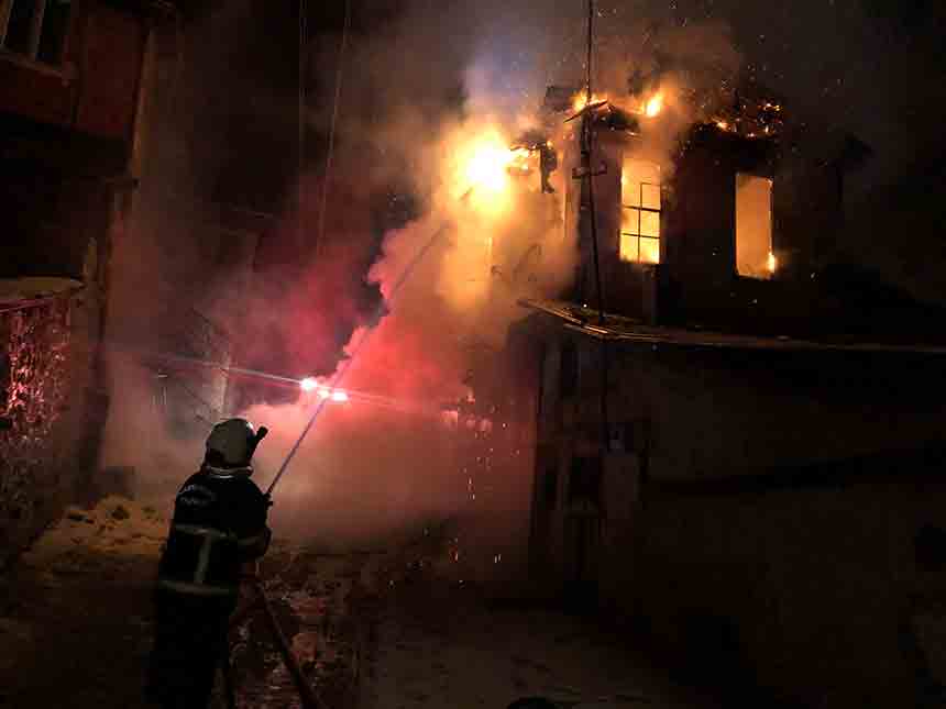 Tadilat halinde olduğu öğrenilen konakta çıkan yangın, bitişiğinde bulunan iki evin çatısına da sıçradı. Çevrede yaşayan vatandaşlar durumu fark ederek hemen itfaiyeye haber verdi.