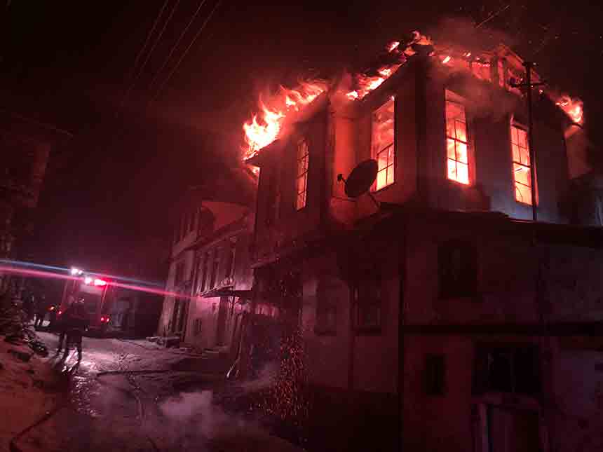 Kastamonu merkez Akmescit Mahallesi Yeni Sokak’ta bulunan üç katlı tarihi konakta, henüz belirlenemeyen bir nedenle yangın çıktı. Kısa sürede büyüyen alevler, ahşap yapıyı tamamen sardı.