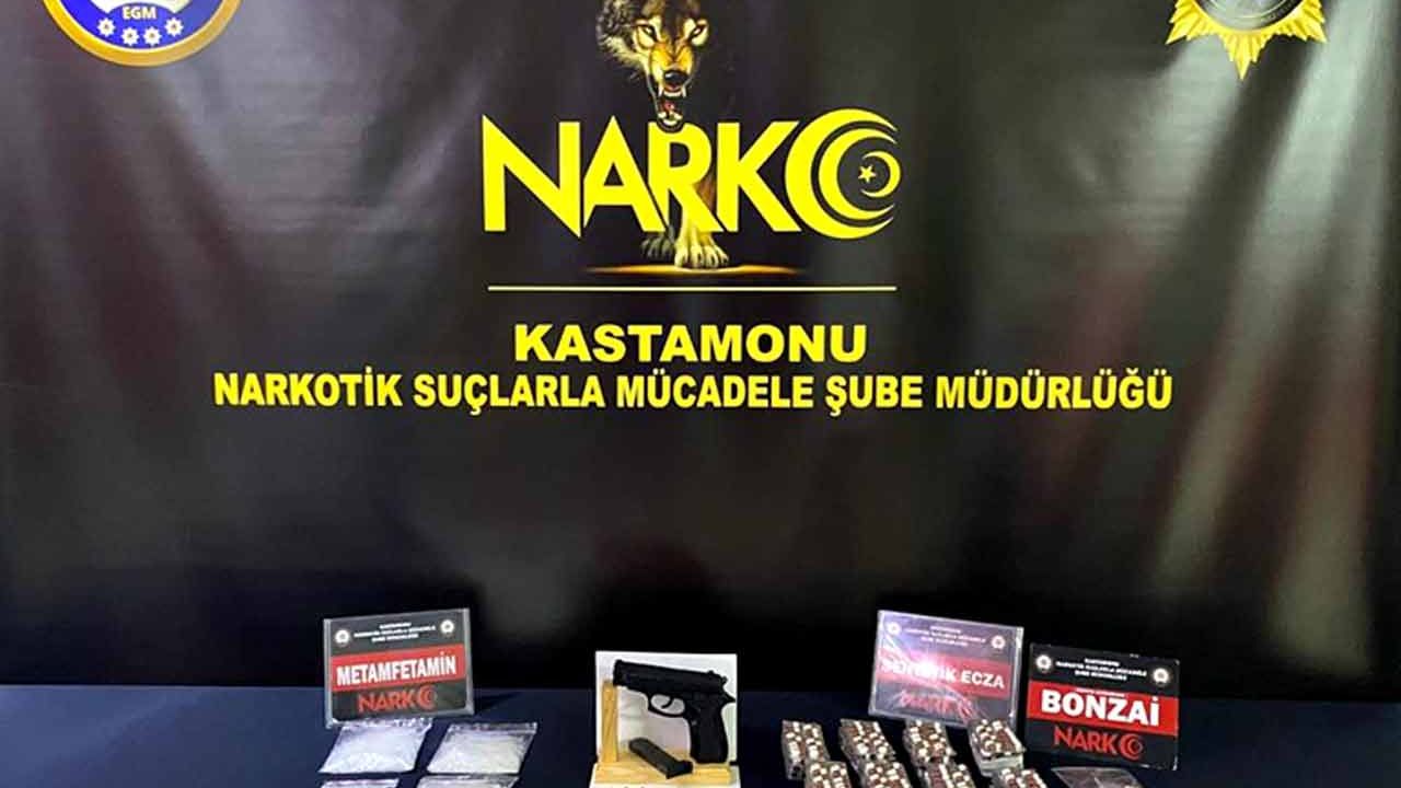 Edinilen bilgiye göre,, 10 Haziran 2024 tarihinde Kastamonu İl Emniyet Müdürlüğü Narkotik Suçlarla Mücadele Şube Müdürlüğü ekiplerince tespiti yapılan M.M.Ş.'nin üstünde ve aracında arama yaptı. Yapılan arama sonucu 336 gram metamfetamin, 686 adet sentetik ecza hapı, 9,75 gram bonzai hammaddesi, 1 adet ruhsatsız tabanca, 7 adet 9 mm fişek, 1 adet uyuşturucu içiminde kullanılan cam düzenek ve suçtan elde edildiği değerlendirilen 56 bin 300 TL ele geçirildi. Emniyetteki işlemlerinin ardından adli makamlara sevk edilen M.M.Ş. tutuklandı. Yürütülen soruşturma çerçevesinde M.M.Ş.'nin ifadeleri doğrultusunda A.G. ve R.B. de gözaltına alındı. A.G. ve R.B. de tutuklandı.