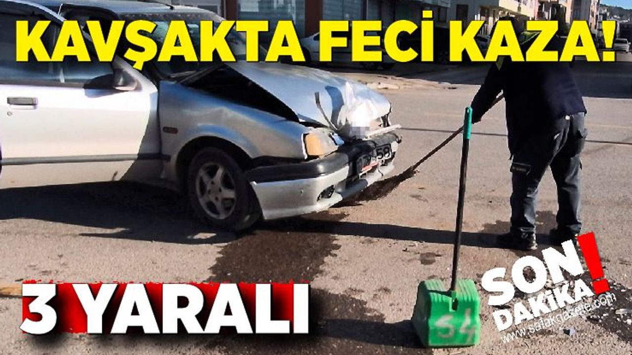 Bartın'da 2 otomobil kavşakta çarpıştı. Güvenlik kamerasına yansıyan kazada 3 kişi yaralandı.