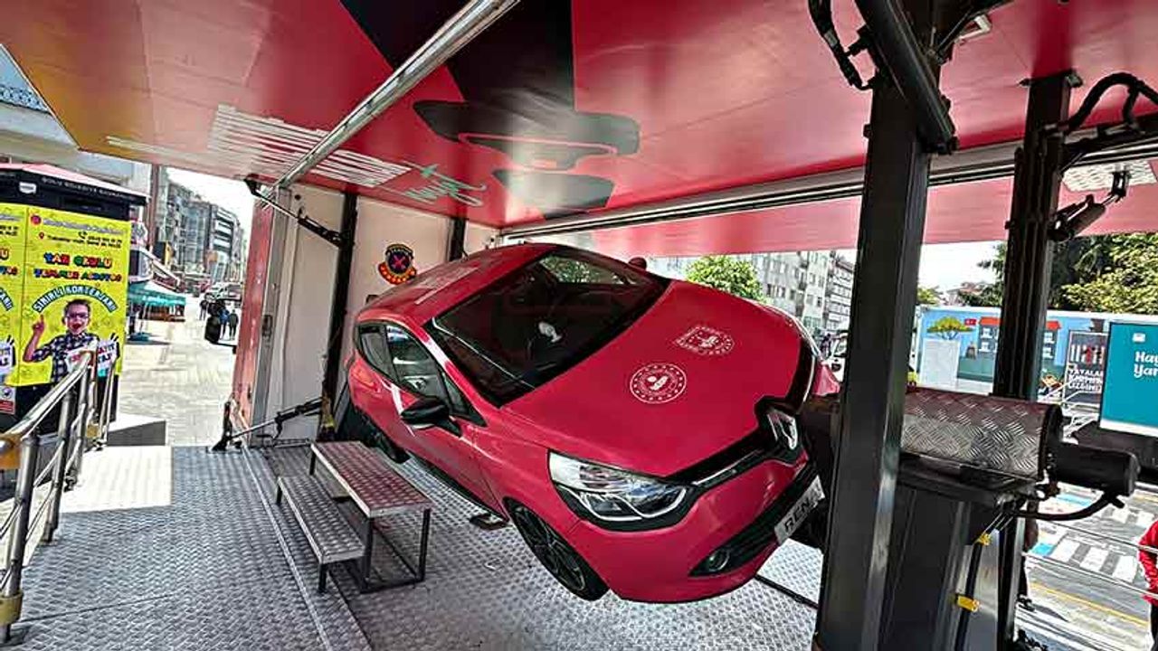 Simülasyon aracına binen Arif Tosun, "Kaza hissiyatı verdi. Ters dönünce biraz kötü oldum" dedi.