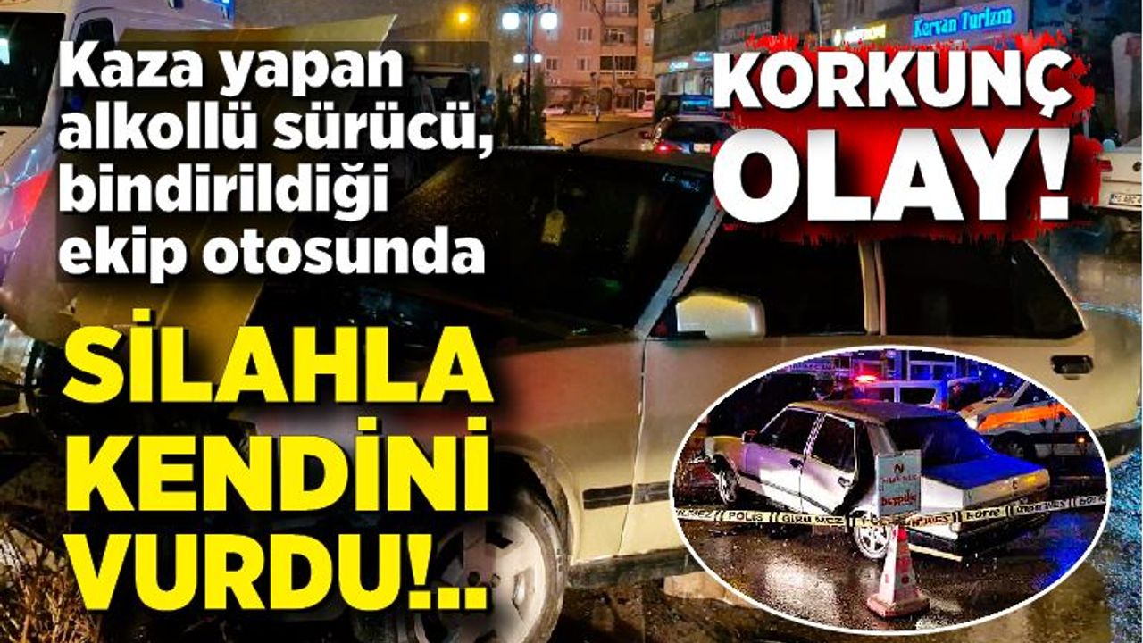 Karaman'da kaza yapan alkollü sürücü, polis merkezine götürülmek için bindirildiği ekip otosunda tabancayla kendini vurması sonucu ağır yaralandı.
