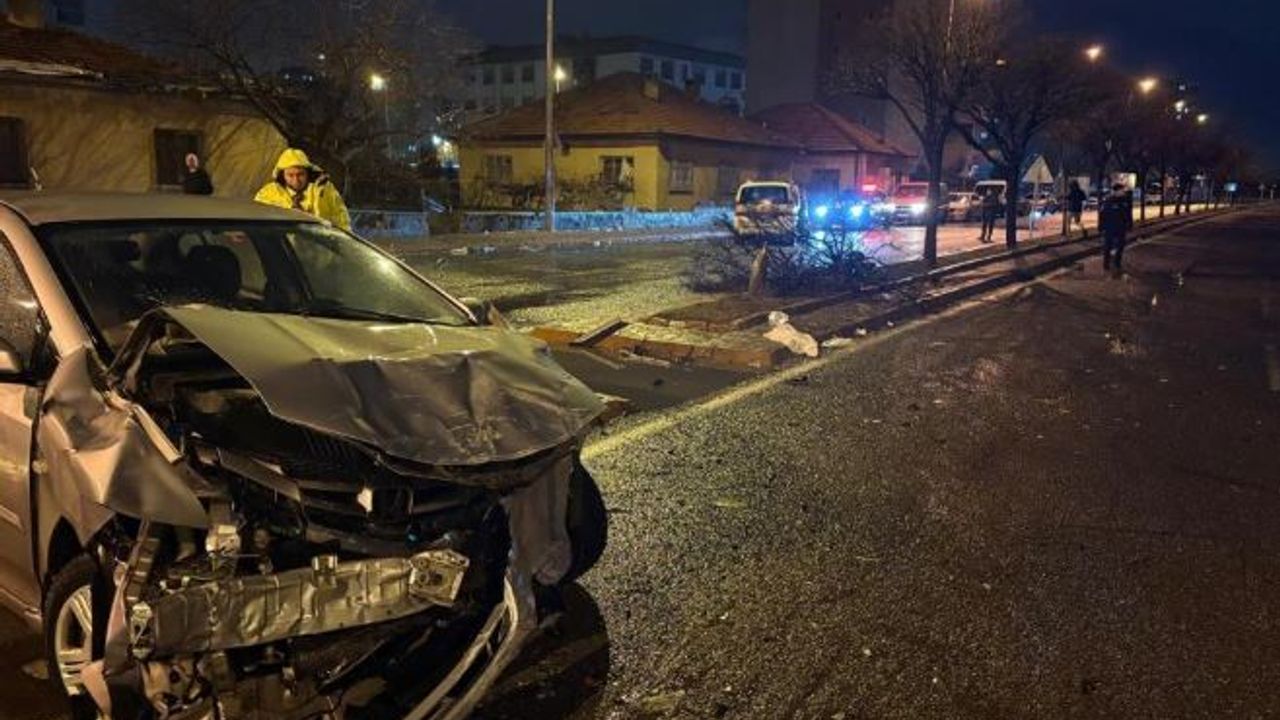 Kayseri’nin Kocasinan ilçesi Hoca Ahmet Yesevi Mahallesi Telefon Sokak’ta meydana gelen kazada, hafif ticari araç ile otomobil çarpıştı. Çarpışmanın etkisiyle hafif ticari araç savrularak orta refüjdeki ağacı ikiye böldü.