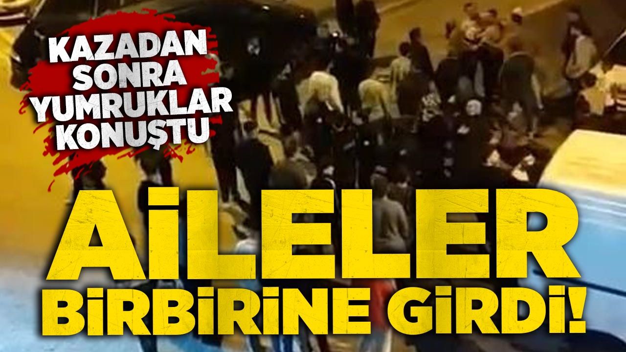 İstanbul Esenyurt’ta yaşanan trafik kazasında ortalık savaş alanına döndü. İki aile kaza sonrasında birbirine tekme tokat saldırırken, olay polisin gelmesiyle son buldu. Yaşanan o kavga anları ise kameraya yansıdı.