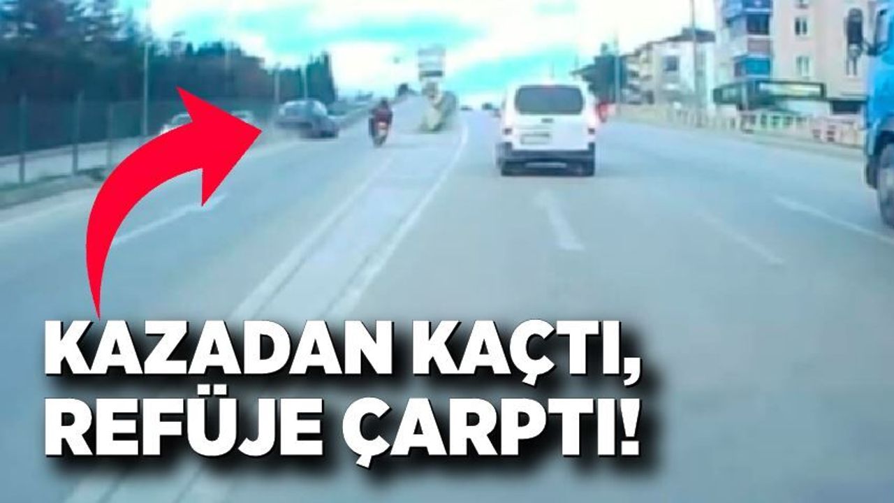 arabük’te meydana gelen trafik kazasında, önünde ani manevra yapan motosiklete çarpmamak isteyen sürücü kazaya neden oldu. Direksiyonu kıran sürücünün kontrolünden çıkan otomobil refüje çarptı.