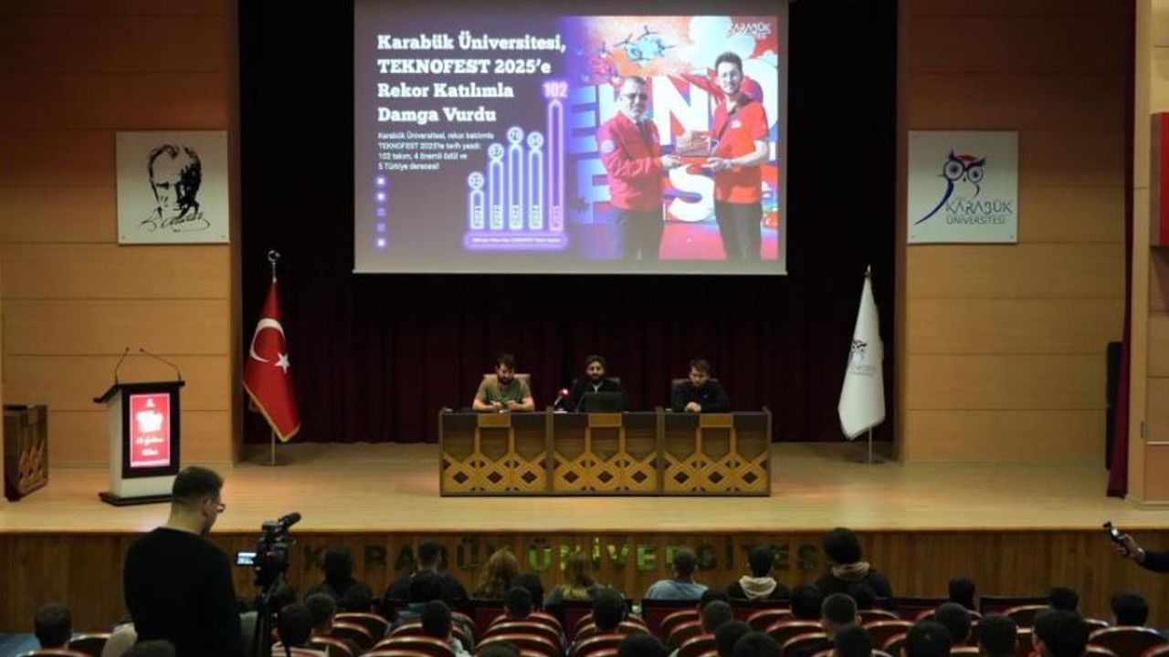 Karabük Üniversitesinin TEKNOFEST sürecinde öğrencilere önemli destekler sunduğunu belirten Kınacı, 2025 yılında 102 takımla yarışmalara katılım sağlandığını ifade etti. Bu takımlardan 53’ünün ön elemeyi geçtiğini, 18’inin finale kaldığını ve 4 takımın ödül aldığını aktardı.