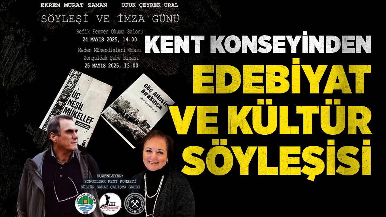 Zonguldak Kent Konseyi Kültür Sanat Çalışma Grubu olarak sizi çok özel bir etkinliğe davet ediyoruz! Ekrem Murat Zaman ve Ufuk Çeyrek Ural ile gerçekleştireceğimiz Söyleşi ve İmza Günü etkinliğinde, edebiyat ve kültür dolu keyifli bir buluşma sizi bekliyor. Yazarlarımızın “Üç Nesil Mükellef” ve “Göç Ailesiz Bırakınca” adlı eserleri eşliğinde, Zonguldak’ın kültürel belleğine dair keyifli sohbetlere ortak olmaya tüm halkımız davetlidir.