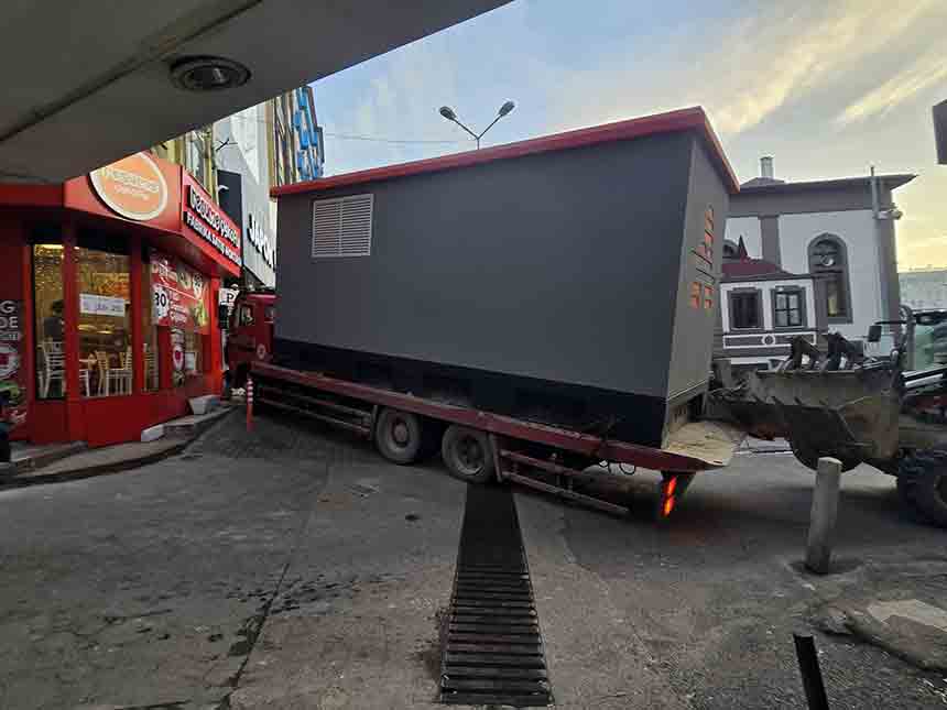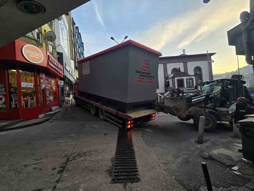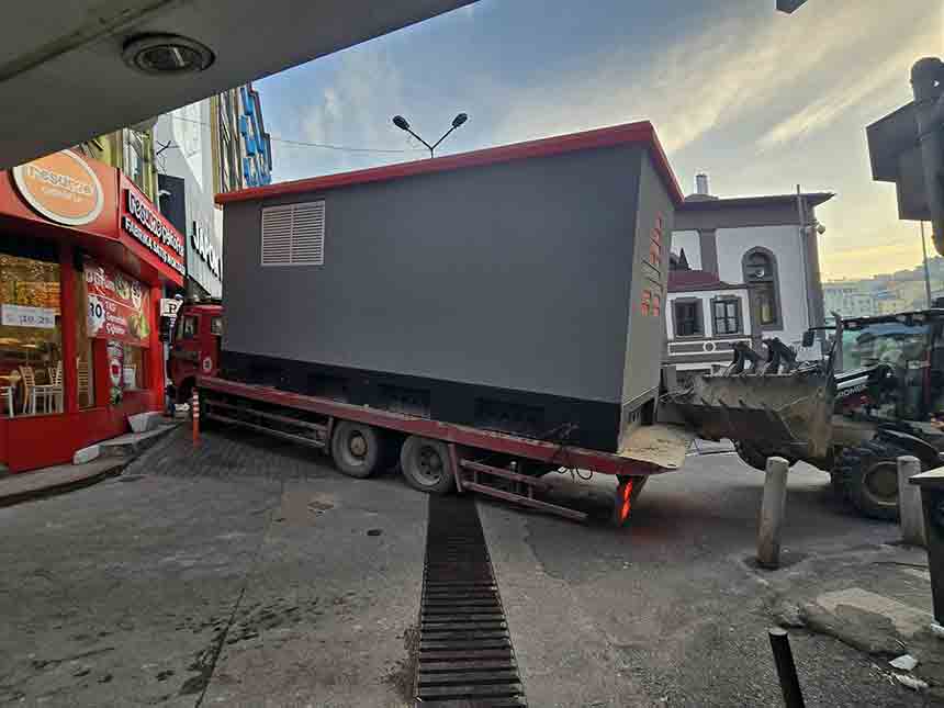 Edinilen bilgilere göre, beton trafo köşkü tır üzerine yüklü halde kent merkezinden geçirilirken dar yollar ve yoğun trafik nedeniyle ilerlemekte güçlük yaşandı. Büyük kamyonun manevra yapmakta zorlanması üzerine trafik durma noktasına geldi.