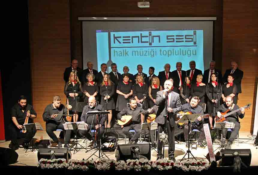 Geçtiğimiz gün akşam Kentin Sesi Türk Halk Müziği Topluluğu, Başkan Suat Ünal yönetiminde muhteşem bir halk müziği ziyafeti sundu. Konser boyunca koro s ık sık alkışlandı. Özellikle şef Suat Ünal'ın yönetimi her türlü övgünün üzerindeydi.