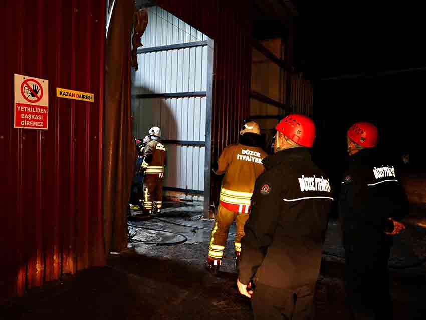 Yangın saat 23.00 sıralarında kereste fabrikasının kazan bölümünde meydana geldi. Yangını görenlerin 112 acil çağrı merkezine yaptığı ihbar üzerine bölgeye Düzce ve Çilimli Belediyesi itfaiye ekipleri, sağlık ve güvenlik güçleri sevk edildi. İhbar üzerine yangın yerine gelen itfaiye ekipleri yangını kontrol altına alarak soğutma çalışması yaptılar. Bu sırada dumandan etkilenen 2 kişiye sağlık ekipleri tarafından müdahale edildi. Yangında maddi hasar meydana geldi.