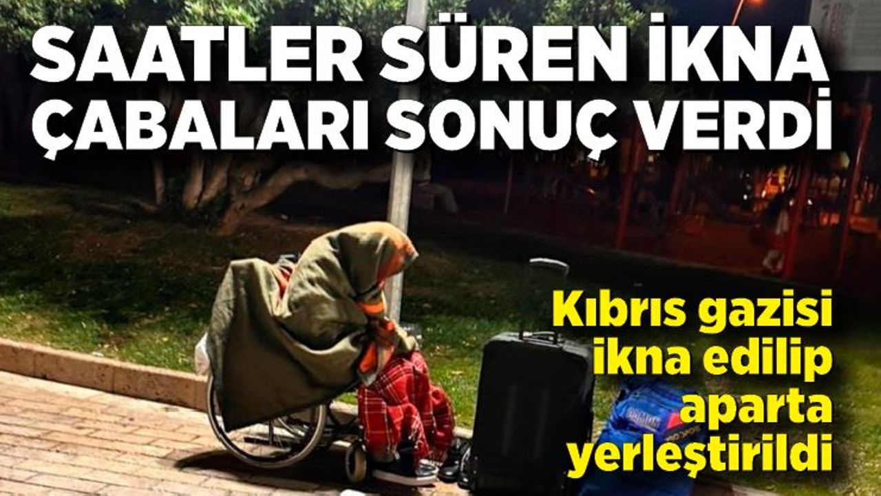 Muğla’nın Marmaris ilçesinde bir parkta valizleriyle tekerlekli sandalyesinde oturan 70 yaşındaki Kıbrıs gazisi, saatler süren ikna çabalarının ardından bir aparta yerleştirildi.