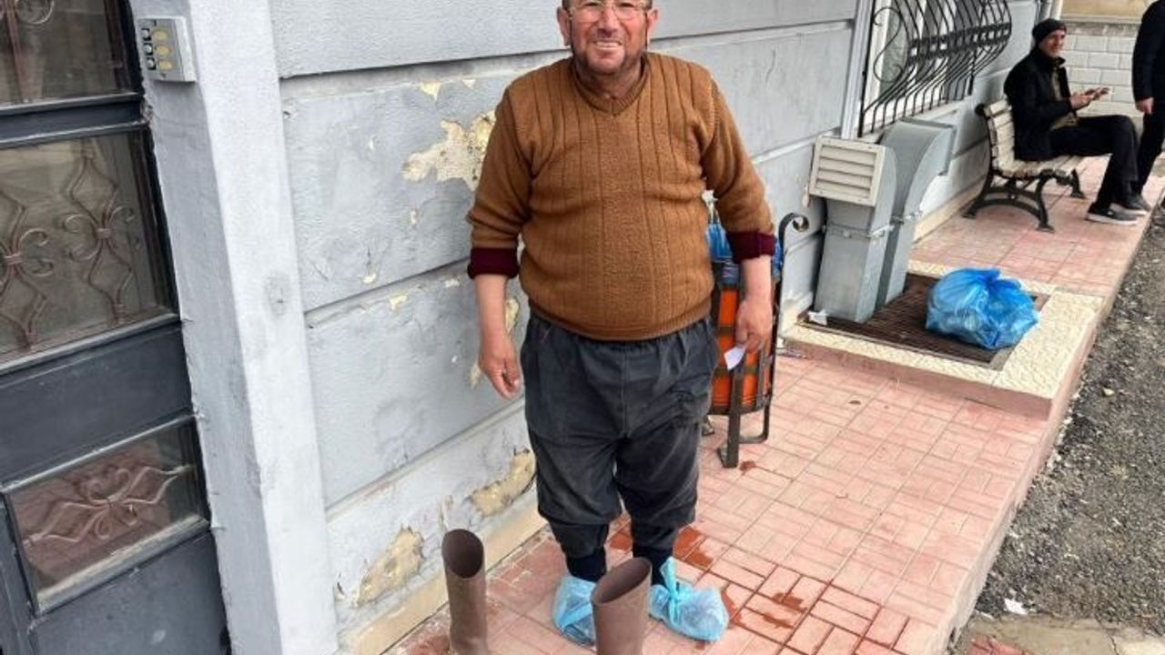 Malatya Yeşilyurt Kiltepe Aile Sağlığı Merkezi’ne gelen inşaat işçisi Hacı Turan Doğan, çizmelerinin kirli olduğunu fark edince kapıda çıkardı.