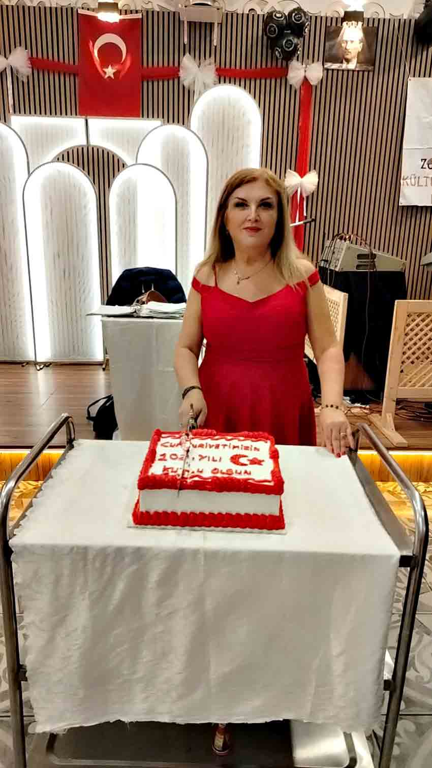 Cumhuriyet’in 102. yıl dönümü anısına etkinlikte özel bir yaş pasta da kesildi. Bu anlamlı an, dernek üyeleri tarafından coşkuyla karşılandı.