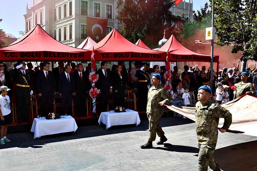 Bolu’da 30 Ağustos Zafer Bayramı’nın 103’üncü yıldönümü, Anıtpark’taki Atatürk anıtına çelenk bırakılmasıyla başladı. Ardından Valilik Meydanı’nda devam eden kutlamalarda, öğrenciler şiirler okudu, folklor ekibinin gösterisi ve mehteran takımı ilgiyle izlendi. Ayrıca, Mudurnu ilçesinde de Zafer Bayramı coşkuyla kutlandı. İlçe halkının yoğun katılım gösterdiği etkinlikler, renkli görüntülere sahne oldu.