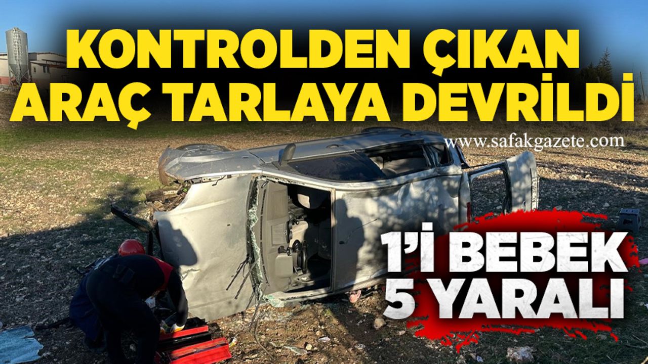 Uşak’ta kontrolden çıkan otomobilin tarlaya devrilmesi sonucu aynı aileden 1’i bebek 5 kişi yaralanarak hastaneye kaldırıldı.