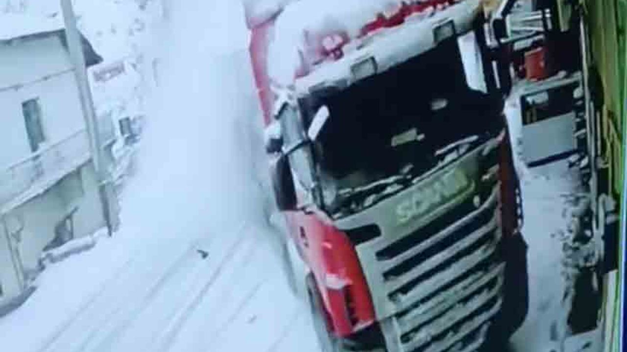 Tokat’ın Reşadiye ilçesinde kontrolden çıkan bir tırın müstakil bir eve çarpması sonucu maddi hasar meydana geldi. Kaza anı güvenlik kamerasına yansıdı.