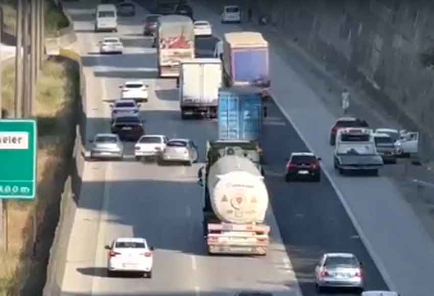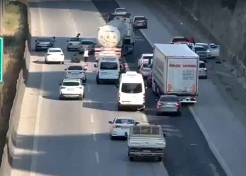 ADANA'da otoyolda bir TIR'ın tekerinden koparak sol şeride düşen lastik kaplaması, 5 otomobilin karıştığı zincirleme trafik kazasına neden oldu. Kaza, cep telefonuyla görüntülendi.