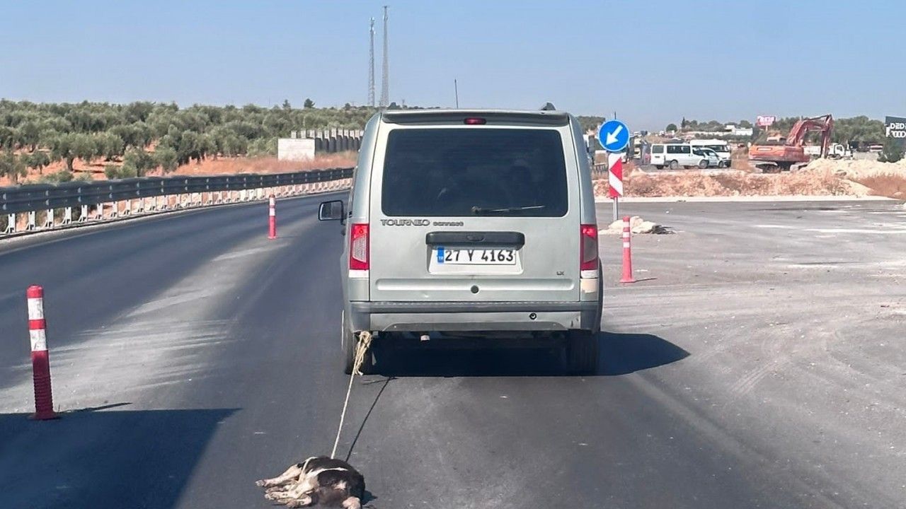Olay, Gaziantep-Nizip karayolunda meydana geldi. İddiaya göre, karayolu üzerinde hareket halinde olan 27 Y 4163 plakalı hafif ticari aracın arkasına iple bağlı şekilde yolda sürüklenen köpeği gören vatandaşlar cep telefonuyla görüntüledi.
