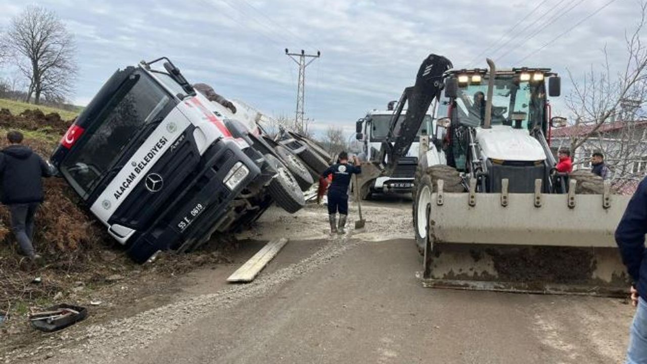 Samsun’un Alaçam ilçesinde meydana gelen trafik kazası, bölgede kısa süreli paniğe neden oldu. Alaçam Belediyesi’ne ait beton mikseri, yaşanan çarpışmanın ardından kanala devrildi.