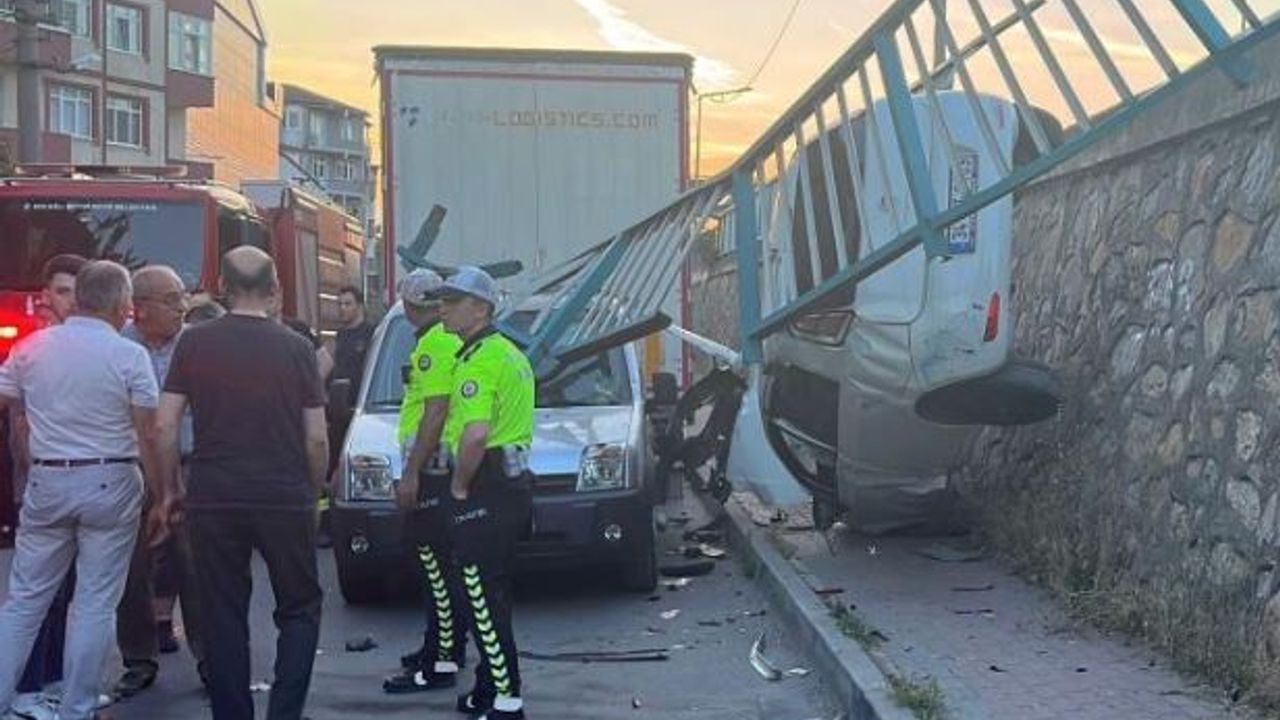 Kocaeli'nin Gebze ilçesinde sürücünün direksiyon hakimiyetini kaybettiği otomobil, kaldırımdaki demir korkulukları yıkarak 3 metrelik duvarda asılı kaldı. Kazada toplam 4 araç hasar alırken, sürücü burnu bile kanamadan kurtuldu.