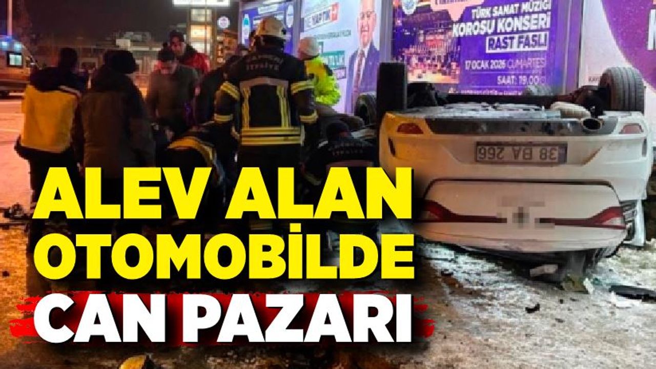 Kayseri’nin Melikgazi ilçesinde kavşakta çarpışan iki otomobilden biri takla atarak alev aldı, diğerinin motoru yola fırladı. Ortalığın adeta savaş alanına döndüğü kazada 2’si ağır 3 kişi yaralandı.