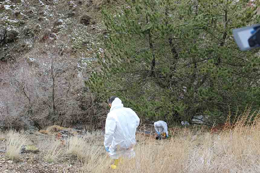Ekiplerin bölgedeki inceleme ve kafa kısmının bulunması için arama çalışmaları devam ediyor.
