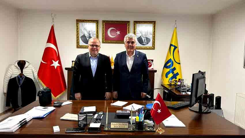 PTT 15. Bölge Müdürü Fahri Çeliker’de ziyaret nedeniyle MKYK üyesi Murat Kotra’ya teşekkür etti.