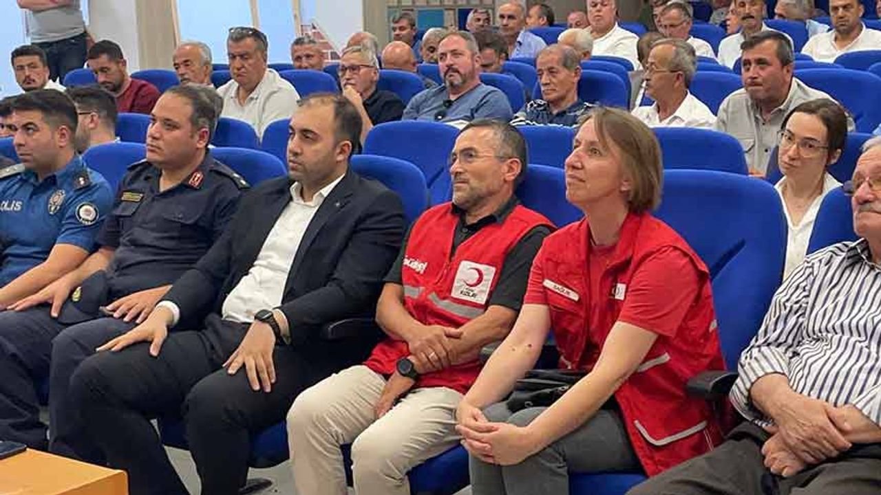 75'nci yıl Cumhuriyet Ortaokulu konferans salonunda, gerçekleştirilen eğitimde semineri, Türk Kızılayı Acil Sağlık Yardımları Müdürü ve Eğitmen Elif Taşkın Aytekin, uzman personeller Göktan Çetin, Derya Derin ve Seher Altuğ tarafından, acil durumlara anında müdahalenin önemi, muhtarlara düşen görevleri ve ilk yardım gibi konularda bilgiler verildi.