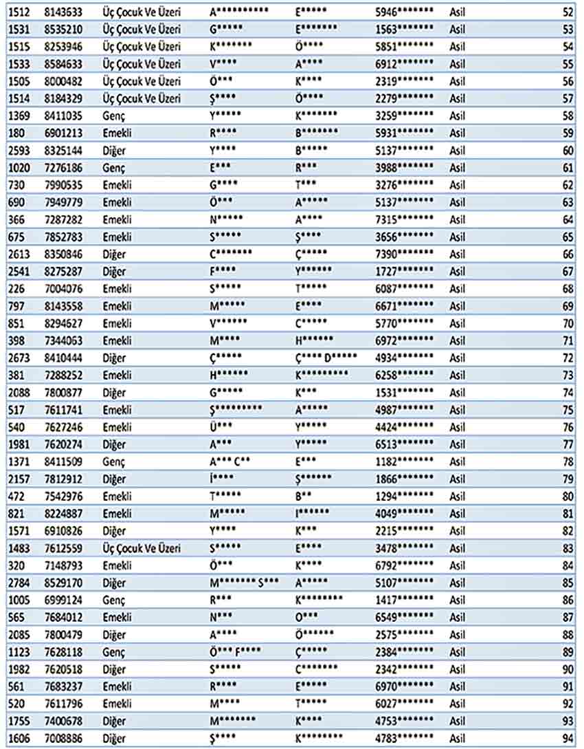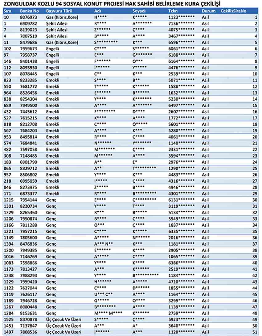Gerçekleştirilen kura çekiminde KOZLU İLÇESİ LİSTESİ