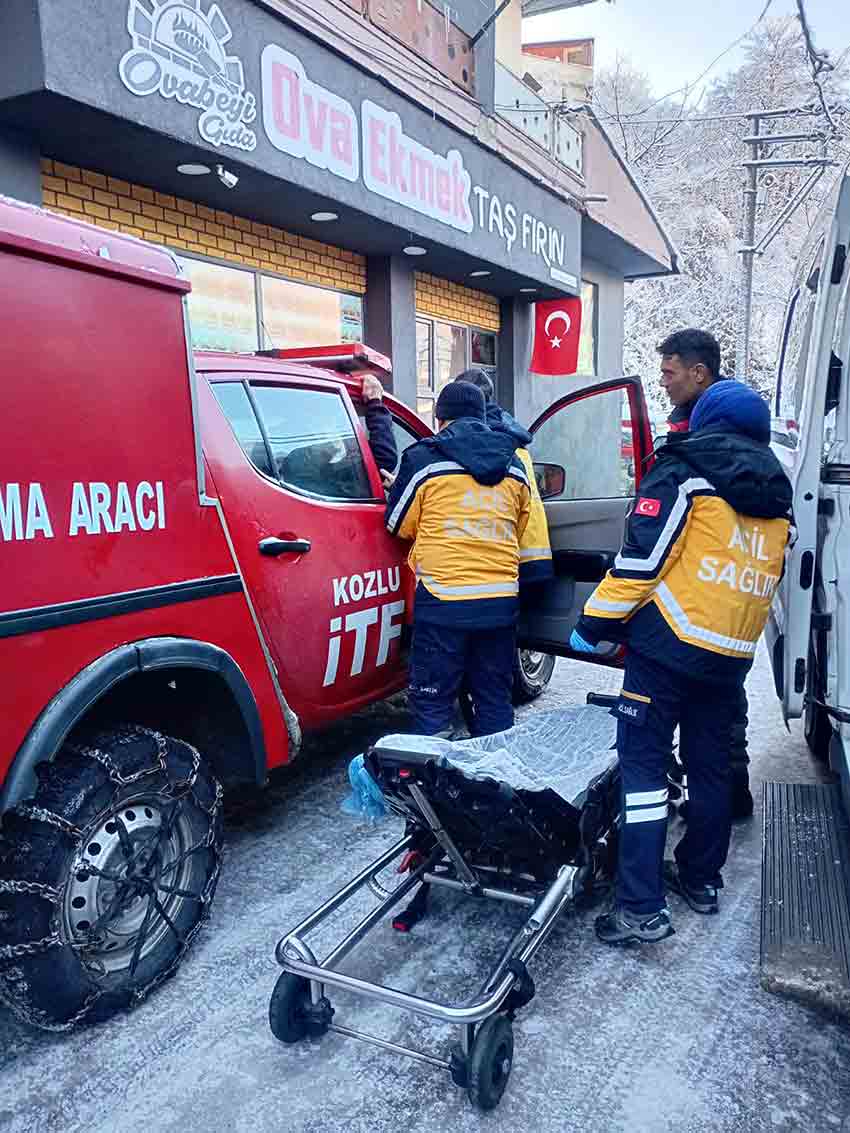 İhbar üzerine bölgeye yönlendirilen Kozlu İtfaiye Müdürlüğü ekipleri , buzlanmadan dolayı ulaşımı zor olan noktada hastaya ulaştı. Ardından hasta, güvenli şekilde hastaneye nakledildi.