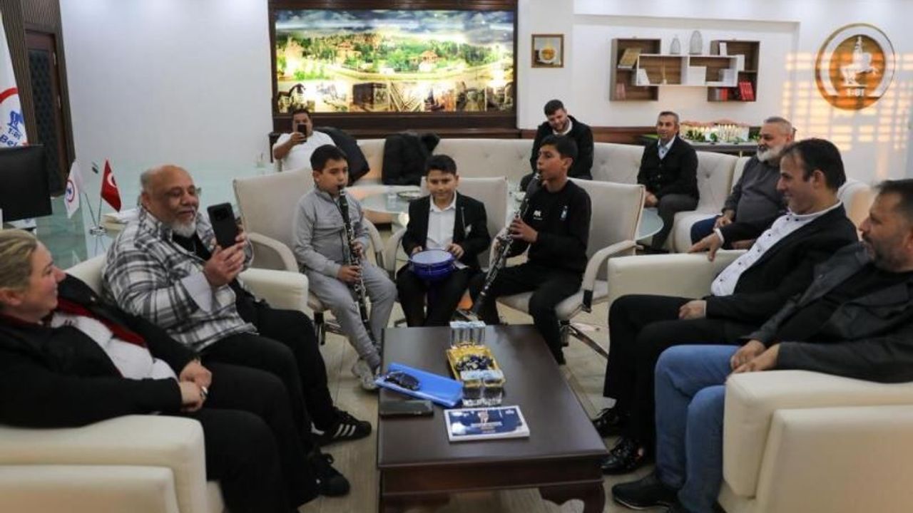 Roman Koordinasyon Merkezi’nde müzik eğitimi alan çocuklar Başkan Faruk Özlü’ye kısa bir konser verdi. Çocukların performansından duyduğu memnuniyeti dile getiren Faruk Özlü, "Nota mutlaka öğrenin ve müziğinizi nota ile icra edin. Sizlere güzel kıyafetler hazırlayacağız. 8 Nisan’a kadar elbiseleriniz, fötrleriniz ve ayakkabılarınız hazır olacak. Çok güzel bir konser vereceksiniz" ifadelerini kullandı.