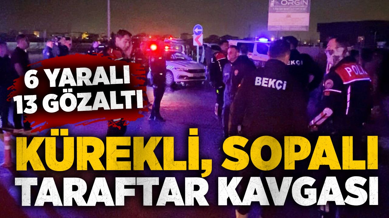 Aksaray'da futbol maçında tartışan, sonrasında ise telefonda tehdit ve hakaretlerle tartışmayı sürdüren 2 taraftar gurubunun kavgası kanlı bitti. Bir iş yerinin basıldığı kavgada 6 kişi kürek ve sopalarla yaralanırken olayla ilgili 13 kişi gözaltına alındı.