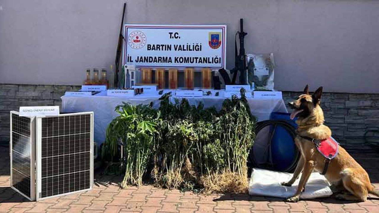 Bartın İl Jandarma Komutanlığı ekiplerince Kurucaşile ilçesine bağlı Başköy köyünde yürütülen çalışmalar kapsamında, 4 şüphelinin üzerlerinde, ikametlerinde ve kullanım alanlarında arama yapıldı. Aramalarda 256 kök kenevir bitkisi, 450 gram kubar esrar, 2 gram kenevir tohumu, 2 adet ruhsatsız av tüfeği, 46 adet av tüfeği kartuşu, 10 adet kasatura, 7 adet cep telefonu, 6 litre kaçak alkol, 1 adet güneş paneli, 400 adet kenevir ekiminde kullanılan poşet, 2 adet SD kart, 1 adet flash bellek ve 1 adet hassas terazi ele geçirildi. Gözaltına alınan 4 şüpheli, jandarmadaki işlemlerinin ardından adliyeye sevk edildi. Cumhuriyet Başsavcılığı talimatıyla adliyeye çıkarılan şüphelilerden O.Y. tutuklanırken, Ş.Ö. adli kontrol şartıyla serbest bırakıldı. M.C. ve M.B. ise ifadelerinin ardından serbest kaldı.