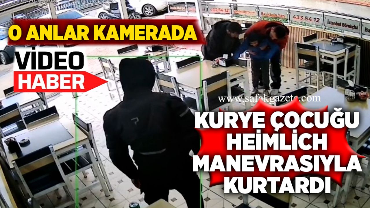 Karabük'te bir börekçide çalışan kurye, boğazına cisim kaçan çocuğu Heimlich manevrasıyla kurtardı.