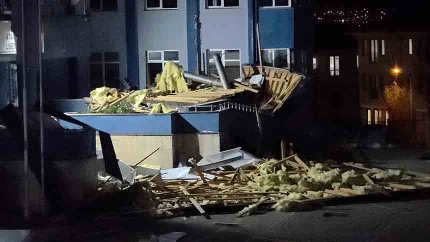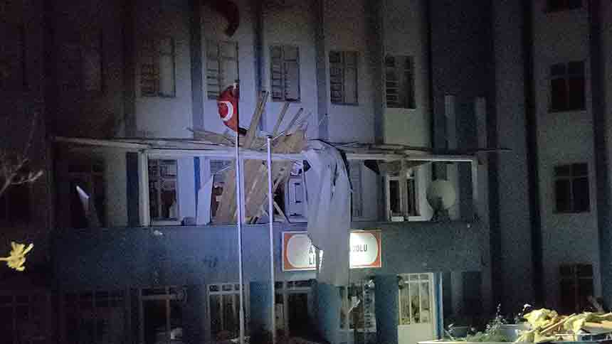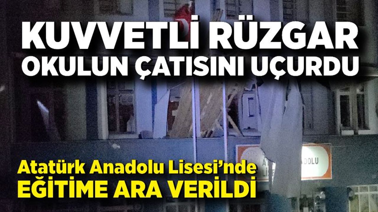 Düzce’de etkili olan kuvvetli rüzgar, Bahçeşehir bölgesinde bulunan Atatürk Anadolu Lisesi’nin çatısını uçurdu. Çatıdan kopan parçalar okul bahçesine ve çevreye savruldu.