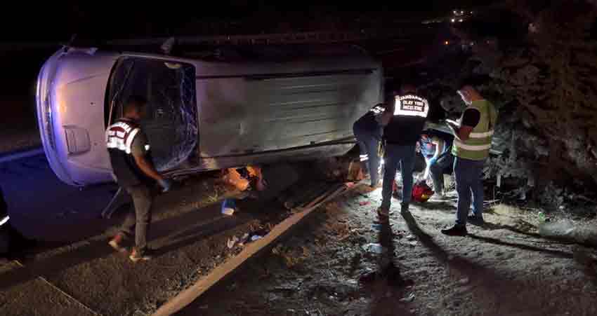 Gaziantep-Şanlıurfa Otoyolu Nizip kesiminde lastiğinin patlaması sonrası taklalar atarak devrilen minibüsteki 2 kadın hayatını kaybetti, 8 kişi de yaralandı.