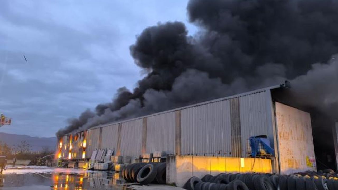 Hatay’ın Dörtyol ilçesi Yeşilköy Mahallesi’nde bulunan ULTRANS lojistiğe ait lastik deposunda henüz bilinmeyen bir nedenle yangın çıktı.