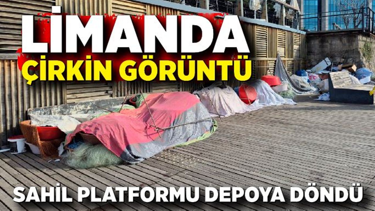 Limana bağlı tekne ve sandallara ait olduğu ifade edilen balıkçı malzemelerinin sahil platformunun üzerine gelişigüzel şekilde bırakıldığı görüldü. Ağlar, kovalar, leğenler ve çeşitli balıkçı ekipmanlarının istif halinde sahil boyunca dizilmesi tepki çekti.