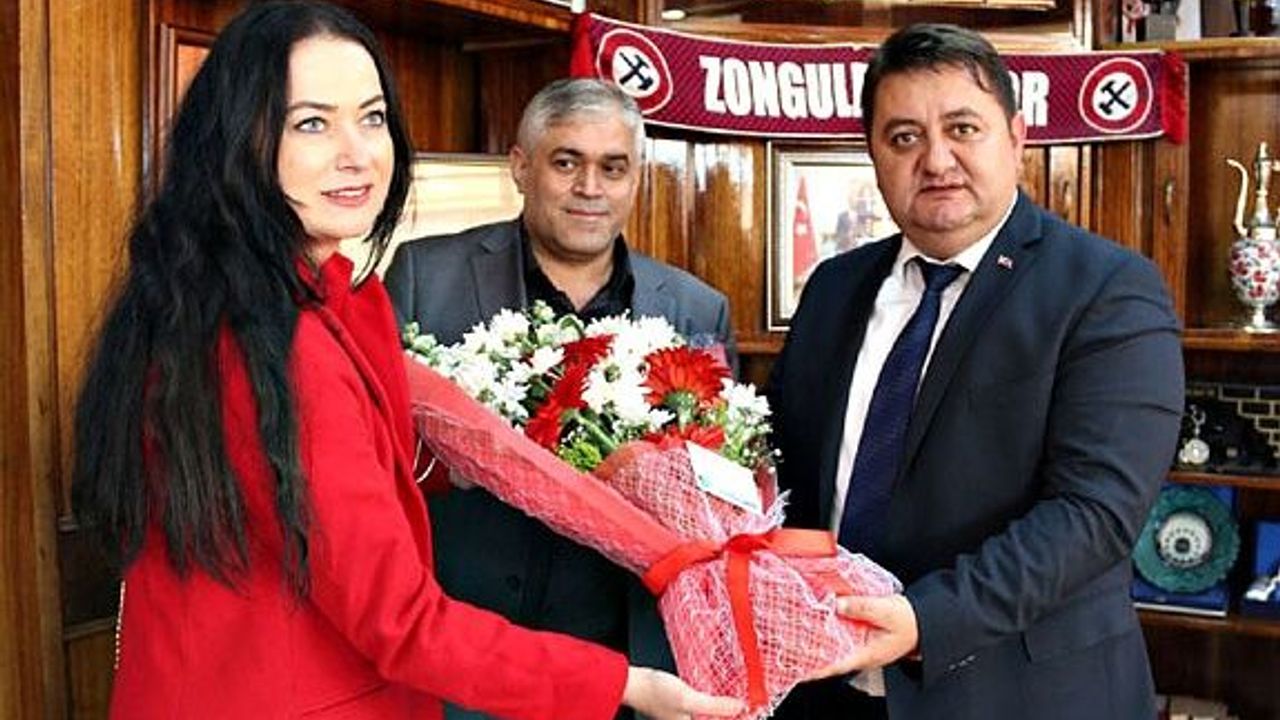 Ziyarette Maden Şehitleri Derneği Başkanı Çetin Yiğit, Genel Maden İşçileri Sendikası Genel Başkanı Hakan Yeşil'e çiçek takdim etti.